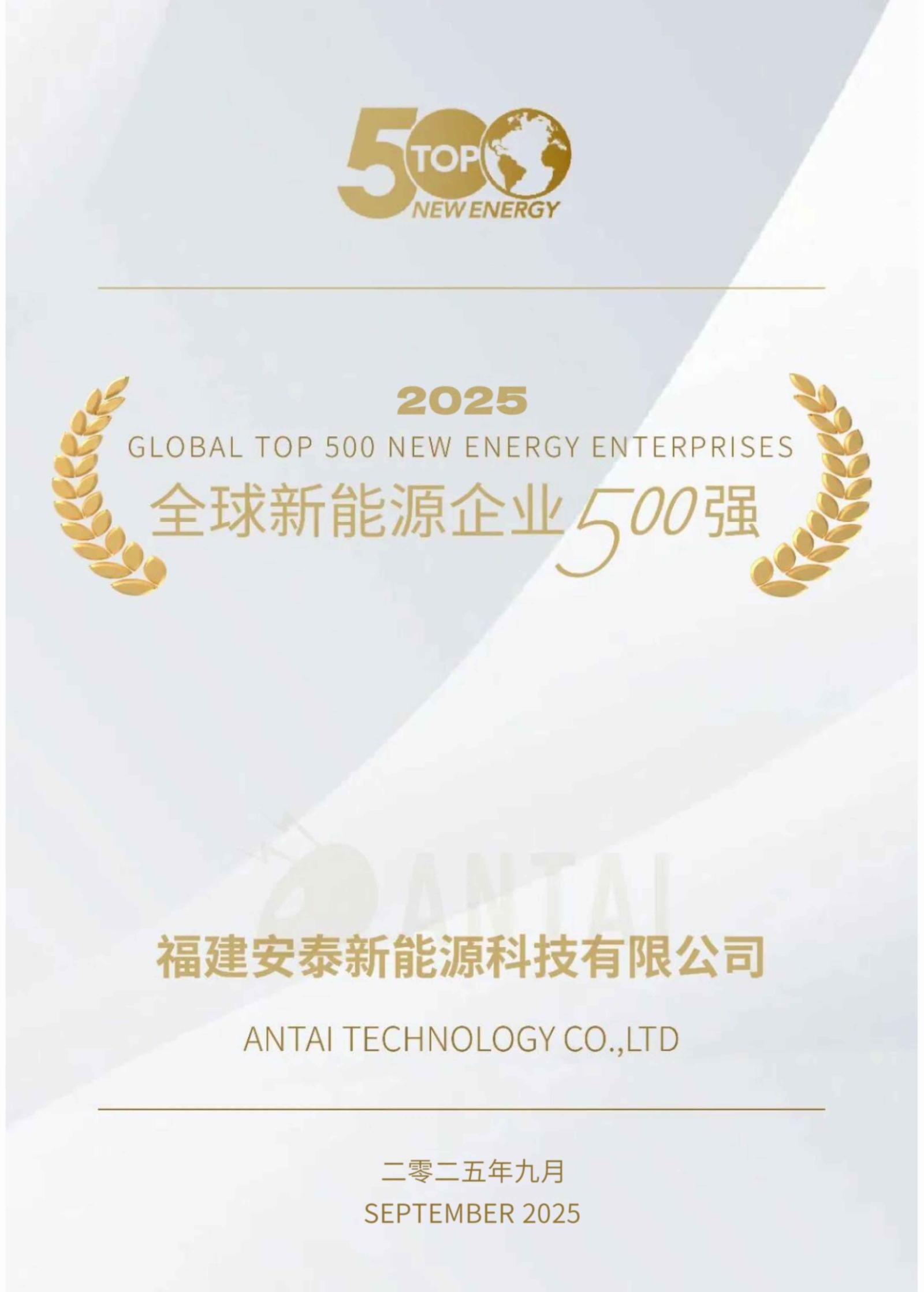 Antaisolar Ranked Among「2025 Global Top 500 New Energy Enterprises」Once Again